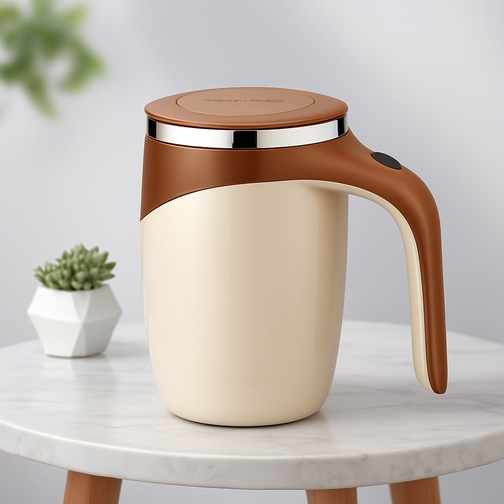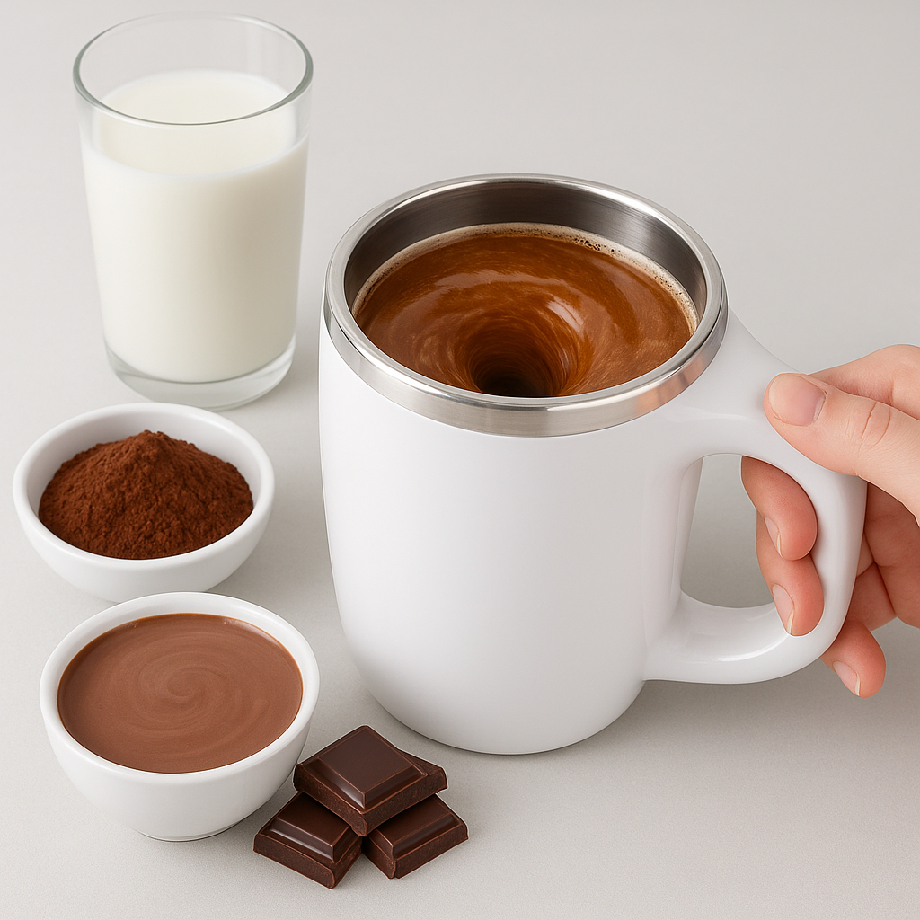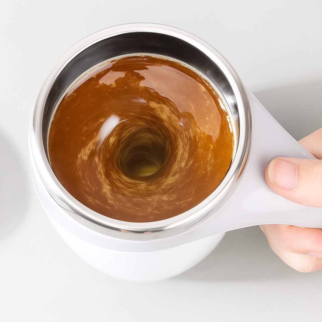 Cuenta con un pequeño motor que activa el sistema de mezcla magnética o rotación automática, logrando una agitación eficiente al presionar el botón, perfecta para disolver polvos o preparar café de manera homogénea.